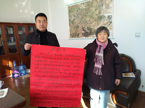1月30日上午,家住龍港區(qū)望海寺象山社區(qū)3-13棟一單元5樓的一位70多歲的老人在女兒的陪同下,來(lái)到自來(lái)水公司,專程送來(lái)一封熱情洋溢的感謝信,代表全體住戶對(duì)自來(lái)水公司營(yíng)業(yè)三分公司維修人員不辭辛苦,兩次及時(shí)維修被凍損管線,解決該樓用水問(wèn)題及熱情周到的服務(wù)表示感謝。