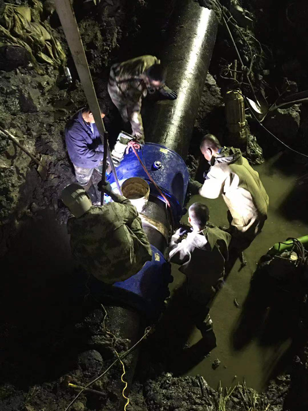 由于管道破裂處位于直徑約10米的淤泥水坑中,地勢環(huán)境非常惡劣,給搶修工作帶來了極大的難度。維修人員首先對施工地點進行圍堰、降水。為防止污水倒灌進入管線,工作人員一邊用四臺大功率水泵同時抽出圍堰內(nèi)的水,一邊控制管線泄水壓力。由于管線大,水量多,經(jīng)過4個小時的連續(xù)降水作業(yè),管線斷裂點才逐漸顯露出來,工作人員立即對破裂部位進行更換。夜晚涼意不斷,坑內(nèi)泥濘不堪,維修人員忍著腥臭的淤泥,不顧蚊蟲叮咬,埋頭苦干,與時間賽跑,他們不怕臟不怕累,全力以赴按下?lián)屝薜摹翱爝M鍵”,跑出了“加速度”,經(jīng)過全體維修人員的連夜奮戰(zhàn),于當(dāng)晚23時搶修結(jié)束,23:30恢復(fù)供水,當(dāng)晚經(jīng)對西山坡6號泵房取水樣化驗水質(zhì)完全達標。
