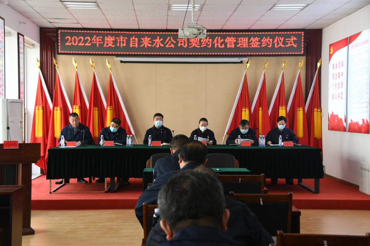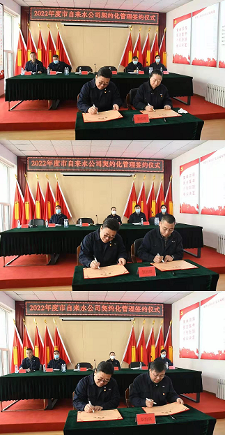 3月10日上午,市自來水公司在公司大會議室舉行2022年度契約化管理簽約儀式及營商環(huán)境提升年承諾書簽定儀式。會議由公司副經(jīng)理馬旭主持,公司領(lǐng)導(dǎo)班子成員、相關(guān)責任部門及二級法人單位負責人參加會議。