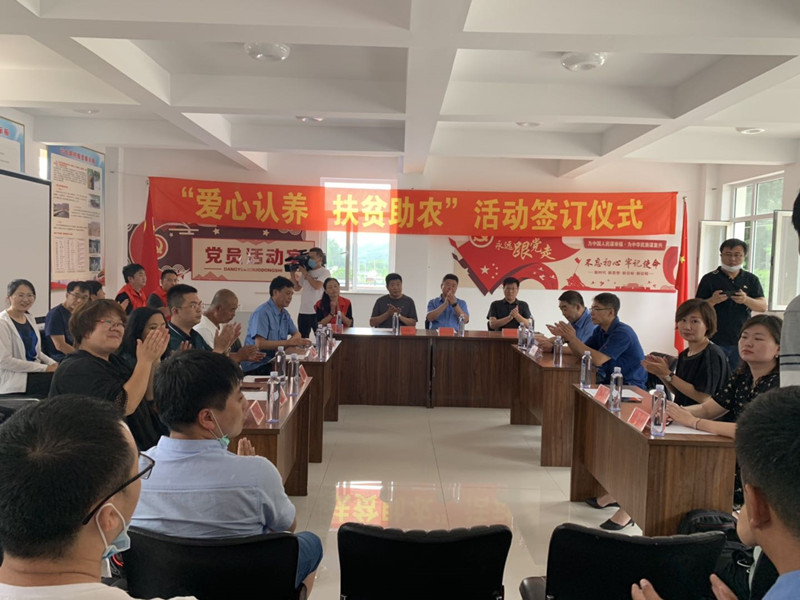 當(dāng)天上午,公司經(jīng)理李文生、黨委書(shū)記張旭濱、副經(jīng)理兼屸螺山泉飲品有限公司總經(jīng)理周小勇、市志愿服務(wù)聯(lián)合會(huì)代表及14家愛(ài)心企業(yè)代表等一行20余人,來(lái)到由建昌縣扶貧辦選定的幫扶村——建昌縣大屯鎮(zhèn)云山洞村,開(kāi)展“愛(ài)心認(rèn)養(yǎng)·扶貧助農(nóng)”現(xiàn)場(chǎng)簽約活動(dòng)。愛(ài)心企業(yè)分別出資一萬(wàn)元左右,共計(jì)13.5萬(wàn)元,用于購(gòu)買雞雛,利用當(dāng)?shù)?ldquo;場(chǎng)地+農(nóng)戶”形式發(fā)展養(yǎng)殖業(yè)?;顒?dòng)中,14家愛(ài)心企業(yè)代表分別與建昌縣扶貧辦、建昌縣云山洞盛世果業(yè)合作社簽訂認(rèn)養(yǎng)協(xié)議書(shū),并展開(kāi)座談交流。建昌縣扶貧辦、大屯鎮(zhèn)政府領(lǐng)導(dǎo)對(duì)本次活動(dòng)給予了極大的肯定,對(duì)市自來(lái)水公司及愛(ài)心企業(yè)的無(wú)私奉獻(xiàn)表示感謝。