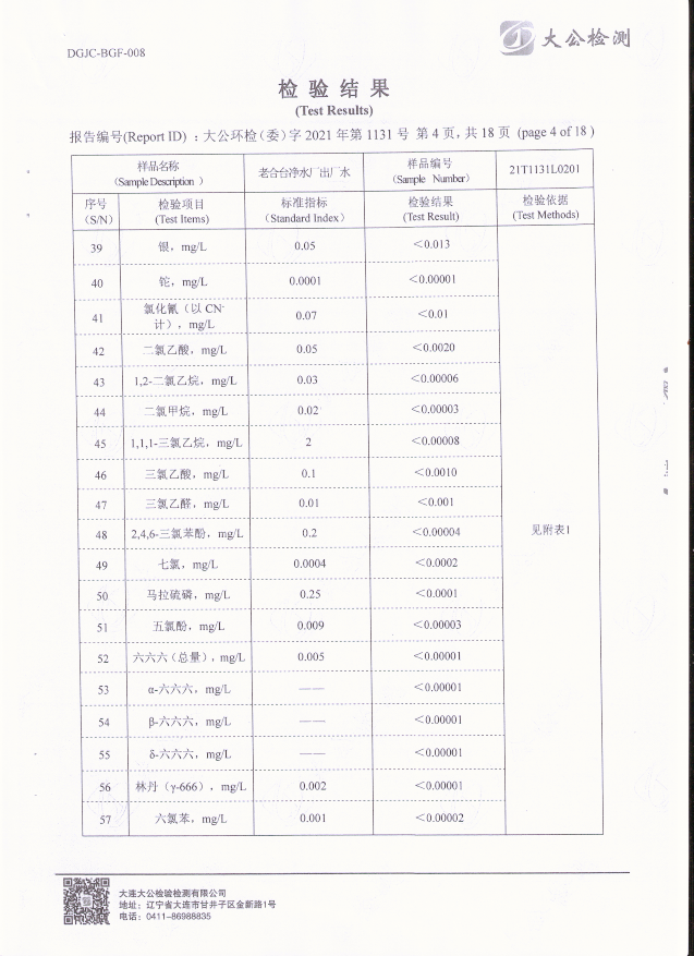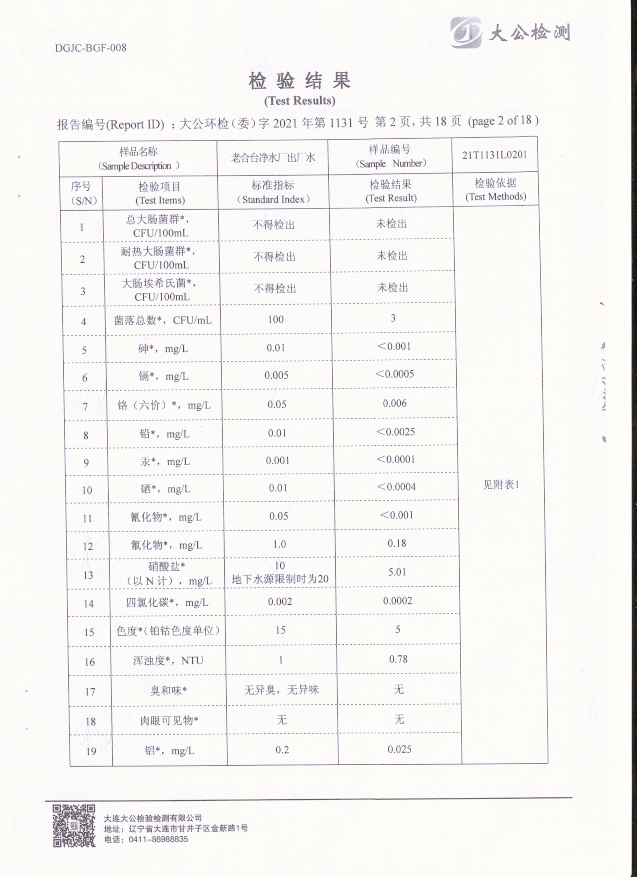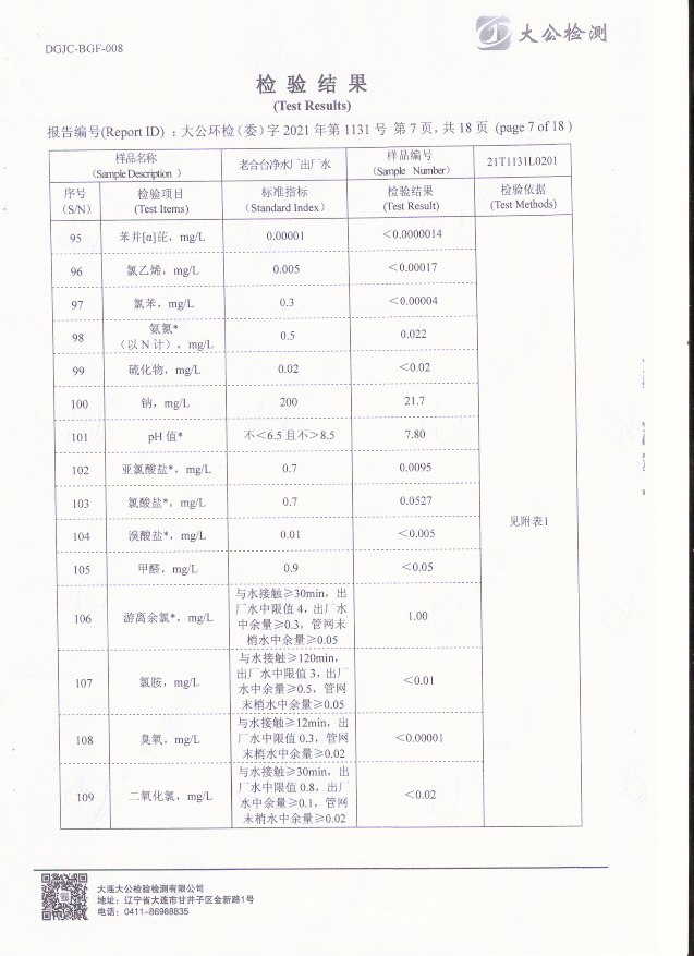 老合臺凈水廠出廠水質(zhì)檢驗(yàn)報(bào)告
