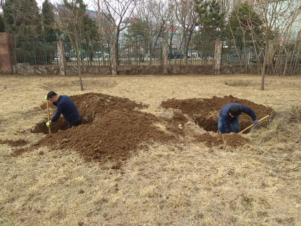 植樹現(xiàn)場,熱鬧非凡。大家分工協(xié)作,挖坑、鏟土、扛苗、扶苗、栽樹、蓋土、澆水等各環(huán)節(jié)都精心對待,各司其職,栽得認真,干得賣力,整個植樹活動現(xiàn)場一片熱火朝天的景象。本次植樹共計49棵,品種多樣,有欒樹、京桃、國槐、銀杏、海棠、玉蘭及中華李。