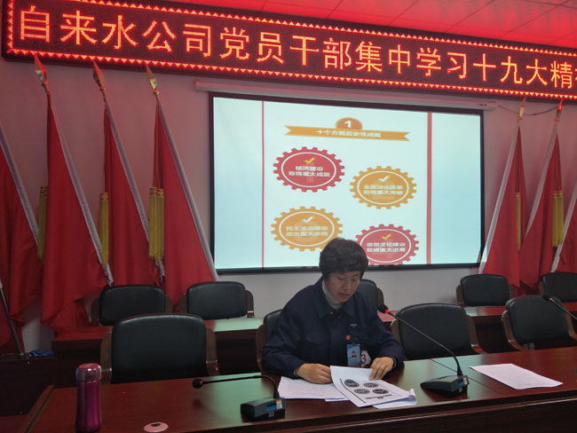 11月2日上午,市自來(lái)水公司組織黨員干部在大會(huì)議室集中學(xué)習(xí)十九大精神。會(huì)議由公司經(jīng)理、黨委副書(shū)記李文生主持,公司領(lǐng)導(dǎo)班子擴(kuò)大成員、中層正副職干部共30余人參加了學(xué)習(xí)會(huì)議。