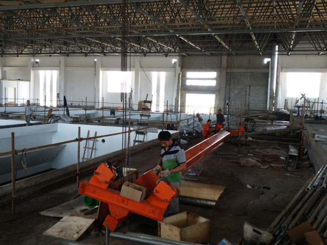 目前,該工程土建部分完成95%;廠區(qū)道路及綜合管網(wǎng)部分完成52%;工藝管線及設備安裝部分完成45%。水質(zhì)檢測中心土建部分完成75%。配水干管工程,征地和設計正在同時進行中,預計10月末建成供水。水廠建成后可實現(xiàn)供水10萬噸/日,將大大改善老城區(qū)、船舶工業(yè)園區(qū)、龍港區(qū)的供水現(xiàn)狀,使供水管網(wǎng)輻射至打漁山工業(yè)園區(qū),有效改善我市供水緊張現(xiàn)狀。