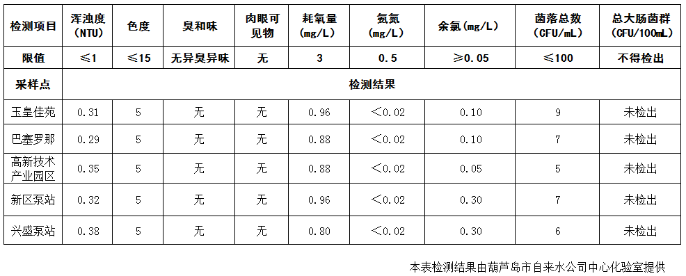 2017年8月23日葫蘆島市城市供水管網水質信息