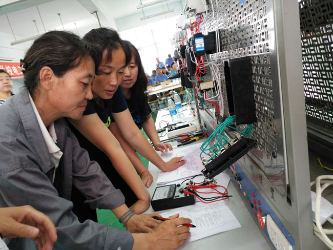 電工比賽,公司邀請(qǐng)了錦西工業(yè)學(xué)校的4位專業(yè)老師作為評(píng)審考評(píng)小組成員,對(duì)本次比賽進(jìn)行評(píng)判。評(píng)分標(biāo)準(zhǔn)包括按圖安裝、線路設(shè)計(jì)規(guī)范,各類工具能否熟練操作,規(guī)定時(shí)間內(nèi)安裝完成等。