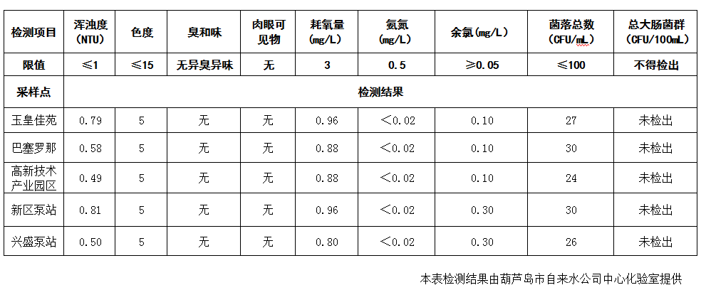 2017年4月26日葫蘆島市城市供水管網(wǎng)水質(zhì)信息