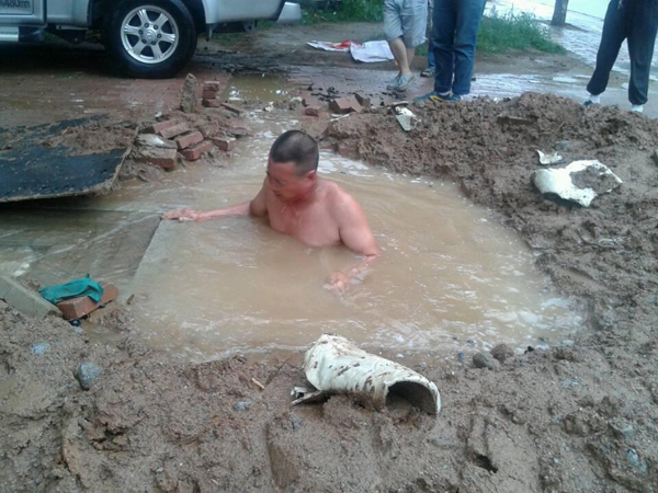 7月20日上午,新區(qū)二所接到調(diào)度室電話,位于市醫(yī)院二部附近的管線爆裂。接到電話后,所長帶領(lǐng)維修人員第一時間趕到現(xiàn)場進行搶修。由于漏點水量太大,兩臺水泵同時抽水也抽不過來,想要順利維修只有關(guān)閉閥門,但是閥門位于水下兩米多,又有大量泥漿混于其中,潛入水底關(guān)閉閥門的難度非常大。這時維修班長張良奮不顧身跳入水中,經(jīng)過幾次潛入水下終于將閥門關(guān)閉,確保維修工作順利進行。